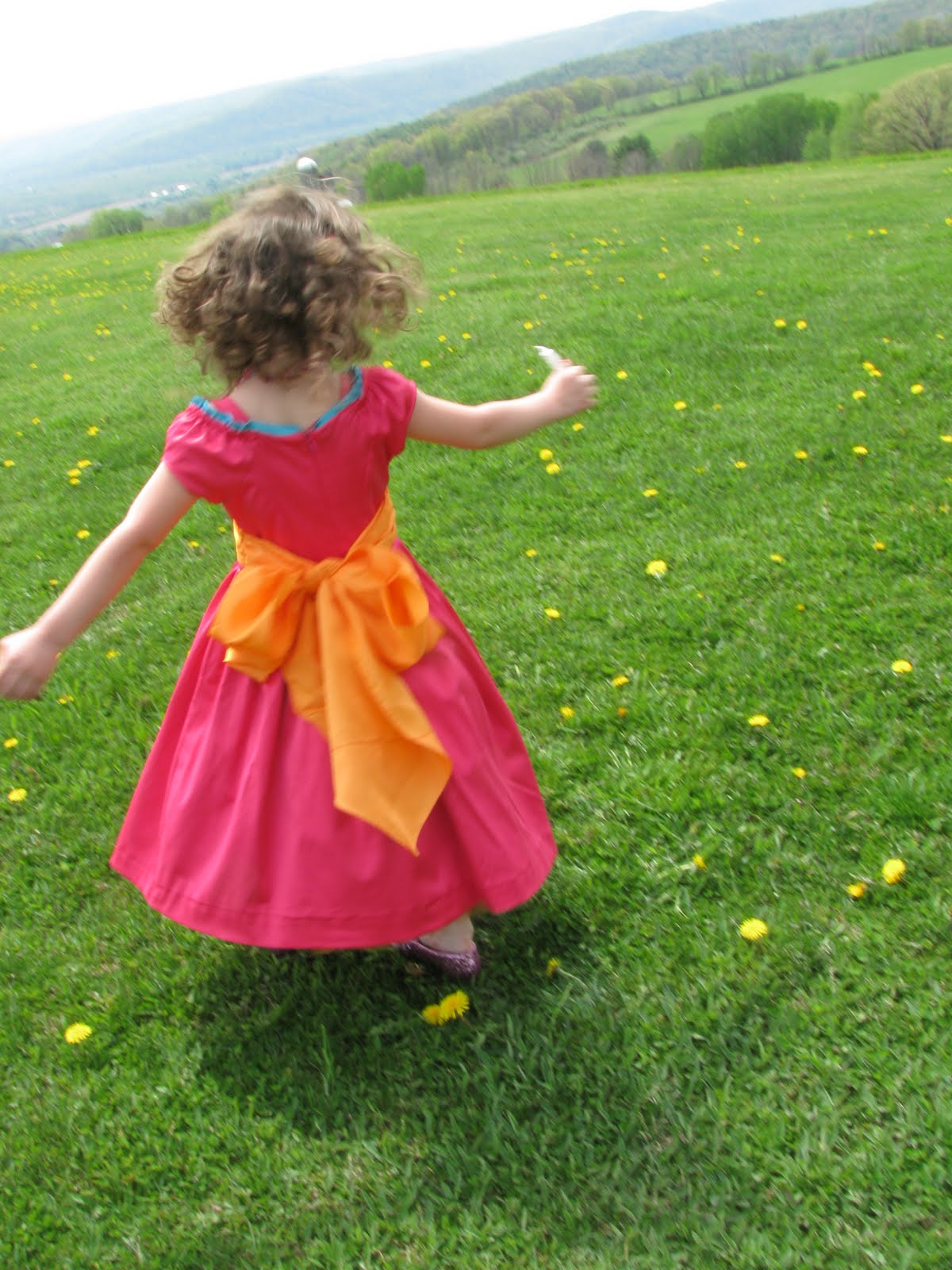 (Saturday afternoon) So this is it... Hot Pink cotton sateen, Orange Taffeta,and Aqua peti-skirt with 4 layers of tulle trimmed in orange ribbon with a peekaboo of orange micro tulle.